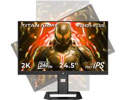 TITAN ARMY P2510S PLUS 24,5 inch Gaming Monitor,2560*1440 16:9 Fast IPS-scherm,240Hz verversingssnelheid,HDR500,123% sRGB,Adaptive-Sync,Dynamic OD,Game+ Assist,12 scenariomodi, PIP&PBP-weergave,Low Blue Light,in hoogte verstelbare draaibare standaard