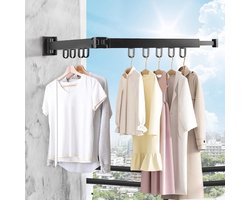 Droogrek voor wandmontage - uittrekbaar wasrek met 12 ophanghaken - 90 cm inklapbaar - wasruimte badkamer slaapkamer - SWAWIS wanddroogrek