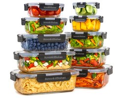 Savoré Kitchen Vershoudbakjes Glas 10 stuks – Stapelbaar - Luchtdicht – Meal Prep Bakjes - Diepvriesbakjes set
