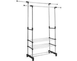 Serolux® - Kledingrek - kledinghangers - dressboy - kledingrek op wieltjes - Dubbele ophangstang - In hoogte verstelbaar - roestvrij staal - Zijsteunen - 360° draaibare - Vergrendelbare wielen - Gewichtscapaciteit 30 kg - 80 × 42 × 80–150 cm