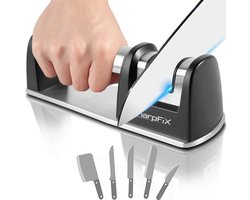 SharpFix 4-in-1 Messenslijper Ultra – Anti Slip Knife Sharpener – Doortrekslijper – Aanzetstaal – Schaarslijper en 3-Traps Messen Slijper in één – RVS