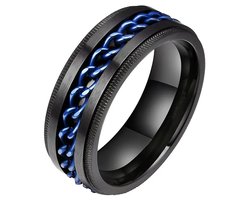 Walletstreet Anxiety Chainring- Fidget Ring- edelstaal- rvs-kleur- zwart met blauwe draaibare schakelmotief-voor mannen en vrouwen-Kerstcadeau-Ideale geschenk