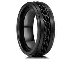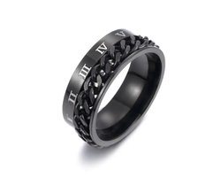 Walletstreet Anxiety Rome Chainring- Fidget Ring- edelstaal- rvs-kleur- zwart met zwart draaibare schakelmotief-voor mannen en vrouwen-Kerstcadeau-Ideale geschenk