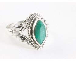 Fijne bewerkte zilveren ring met smaragd - maat 16.5