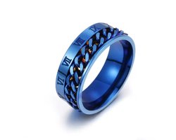 Walletstreet Anxiety Rome Chainring- Fidget Ring- edelstaal- rvs-kleur- Blauw met Blauw draaibare schakelmotief-voor mannen en vrouwen-Kerstcadeau-Ideale geschenk