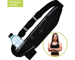 MySportFit - Premium Hardloop Heupband - Waterafstotend en Ademend Materiaal - Verstelbaar - Reflectoren - Ruime Opbergvakken voor Smartphone, Drinkfles of Powerbank - met Kabel Uitgang - Unisex - Zwart - Hardloopriem - Running belt - Fitness - Sport