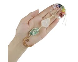 Edelsteen Hanger met Maan, Ster & Levensboom - Handgemaakte Boho Kristal Decoratie voor Auto, Raam of Interieur - Spirituele Suncatcher met Natuurlijke Stenen - Positieve Energie & Bescherming - Unisex Cadeau voor Vrouwen en Mannen