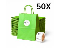 Papieren Draagtas (S) - Lime Groen - (Inclusief Stickers “Cadeautje voor jou”) - 50 Stuks - 18x8x22 cm - Papieren Tasjes - Kraft Tas - Tassen - Cadeau Tas - Hoogwaardig Natron Kraft Papier - Eco-vriendelijk