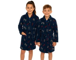 Kinderbadjas game – blauwe badjas kind - fleece – game badjas - tiener - cadeau - maat 140