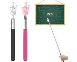 Aanwijsstok uitschuifbaar - Pointer - Lerarenwijzer - Pointer Finger Stick - vingerwijzers voor klaslokaal - 2 stuks - Aanwijspen Telescopisch - voor lezen en presenteren - Zwart & Roze