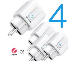 Arisenn® Zigbee 4 Pack Slimme Stekker EU | Wifi | Stembediening (Google, Alexa, Siri) | App | Timer | Energie Meter | Zigbee 3.0 | Thuisautomatisering | Makkelijk te Installeren | Perfect voor Beginners | Bespaar Energie | Afstandsbediening per 4