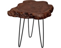 Bijzettafel van massief hout houten tafel ca. 30 x 40 cm vintage onbehandeld unicum, kleur: donker natuur