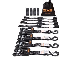 VEVOR Set van 4 Spanbanden 0,04 X 2,4 M Spanband 2362 Kg Ratelspanband Polyesterband En Koolstofstalen Haakbevestigingsband Ratelspanband Ideaal voor Motorfietsen Fietsen Kajaks UTV Boten ATV