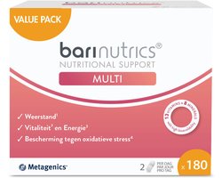 Barinutrics Multi - Voordeelverpakking 180 capsules (3 maand voorraad) - Multivitamine voor en na een maagverkleining (gastric bypass, sleeve) - 13 Vitamines & 8 Mineralen - Vitamine A, B, C, D, E, K, Zink, Ijzer, Koper, Selenium, Jodium en meer