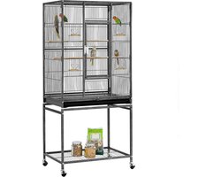 Vogelvolière volière groot vogelhuis met wieltjes voor naamphensitten, papegaaien, 62 x 43 x 136cm , HMTM-BC-10017-Black