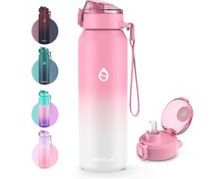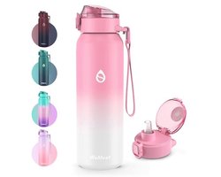 WEMEET Geïsoleerde waterfles met afneembaar rietje 503 ml, 18/10 roestvrijstalen dubbelwandige waterbeker voor sport, sportschool, reizen en school (roze wit)