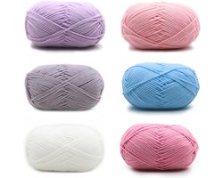Haakgaren - brei- en haakgaren - handbreigaren - katoengaren - wol om te haken - melkkatoengaren - katoen voor haken - haken en kunsthandwerk - 6 kleuren - 6 stuks - 50 g