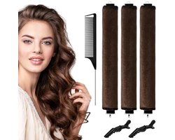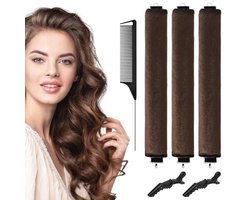 WuGU 3Pcs Heat Free Hair Curlers, Flexible Night Curls with Hook and 2 Clips, DIY Curlers for Short, Long or Curly Hair (Brown)