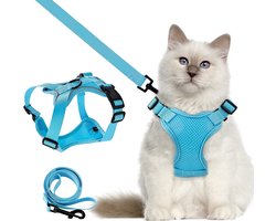 Kattenharnas met riem, 150 cm ontsnappingsbestendige kattenriem met harnas voor katten, verstelbare zachte kattenvestcontrole Ademende kattenriem met reflecterende strips (S, blauw)
