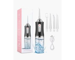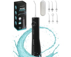 Mondura® Black series - Waterflosser Draadloos - Monddouche - Elektrische Water Flosser - Flosapparaat – 6 opzetstukken - 300 ml – 5 standen - Zwart