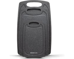 WonderCooks Kunststof snijplanken set - 3 stuks - Met anti-slip handvaten - Stijlvol design - Geschikt voor vaatwasser - BPA-vrij Kunstof