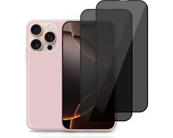 Hoesje + 2x Privé Screenprotector geschikt voor Apple iPhone 16 Pro Max – Privacy Tempered Glass - Back Case Cover Roze
