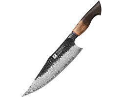 XinZuo Koksmes Damascus – X06 Mo Series – 22 cm – Gebrand Eiken Handvat – Professioneel Keukenmes