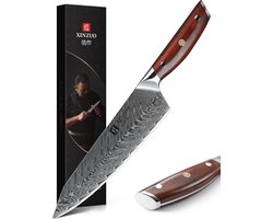Damascus Koksmes (67 lagen) | Xinzuo B27 Yi | Luxe & Professioneel | Vlijmscherp Damascus staal | 34.5 cm Keukenmes met rozenhouten handvat