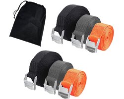 YIXISI 6 stuks spanbanden, verstelbare ratelspanbanden, bevestigingsbanden met draagtas, voor motorfiets, auto, aanhanger, bagage, boot, 2,5 cm, 2 zwart 5 m, 2 oranje 2 m, 2 grijs 3 m