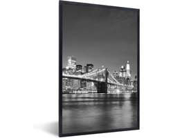 PosterMonkey - Poster - Fotolijst - Brooklyn - Brug - New York - Water - Zwart wit - Kader - Poster in lijst - 60x90 cm - Muurdecoratie - Kamer decoratie - Posters - Decoratie woonkamer