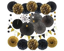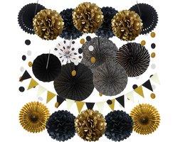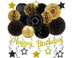 Zwart-Gouden Verjaardagsfeestdecoratie Set - 29 Delig - Zwart - Papieren - Zerodeco