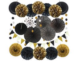 Zerodeco Feestdecoratie, papieren pompons, hangende waaiers, driehoekige wimpels, hangende glitters, stippen, papieren slingers, voor feest, bruiloft, verjaardag, festival, Kerstmis en carnaval, 21 stuks