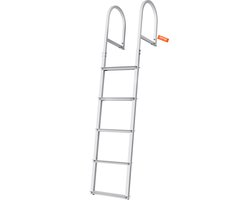 VEVOR Dockladder 5 Verwijderbare Treden, 227 Kg Laadvermogen Aluminium Pontonbootladder Met 8 Cm Brede Trede en Antislip Rubberen Mat voor Het Aan Boord Gaan Van Schepen/Meren/Zwembaden/ZeeëN
