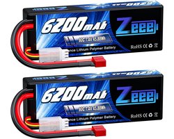 Zeee 2S Lipo-batterij 7.4V 80C 6200mAh met Deans Plug Hard Case RC-batterij voor RC-auto RC-vliegtuig RC-helikopter RC Hobby (2-packs)