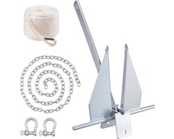 Fluke-Stijl Ankerset, 6 Kg ,Thermisch Verzinkt Stalen Anker met 2,4 M Ketting, 30,8 M Touw en Twee 10 Mm Sluitingen voor Kleine Schepen Onder 914cm, Ideaal voor ZeeëN, Rivieren en Kusten