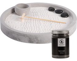 Japanse zen tuin voor thuis/kantoor - wit/zwart zand - D24 cm
