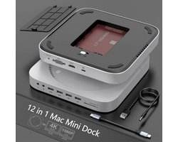 12 in 1 Type-C Hub Mac mini docking station with Hard Drive Enclosure | USB-C Docking Station | Stand for Mac Mini M1 with SATA SSD/HDD, HDMI, VGA, USB, TF/SD, Audio Jack | Mac Mini Hub for 2018/2020| Mac mini Hub |