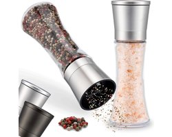 ZOLMER® Peper en Zoutmolen 2 Sets Verstelbare Keramische Kruidenmolen- Elegante Zout en Pepermolen van Hoogwaardig Roestvrij Staal, ook als Chilipepermolen (Zonder Kruideninhoud)
