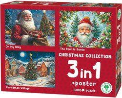 Kerstpuzzel 3 x 1000 Stukjes - Mr. Broccoli 3 in 1 Puzzel Kerstmis - Kerstman en Kerstboom - Inclusief Poster - FSC® - 68 x 48 cm - Legpuzzel Kerst - Kerstpuzzels voor Volwassenen