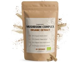 Cupplement Paddenstoelen complex 400 mg 60 Capsules - Biologisch Extract Lion’s Mane, Cordyceps, Reishi & Chaga – Energie & Immuunsysteem
