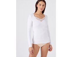 Damart - T-shirt met lange mouwen fijn geribd guipure kant Thermolactyl - Dames - Wit - S