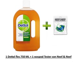Dettol Antisepticum - Ontsmettingsmiddel - Antisepticum - Allesreiniger - 750 ml + Neef & Neef huismerk Waspod testertje GRATIS erbij!