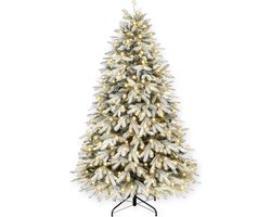 EdelSpar Kunstkerstboom met sneeuw en warmwitte verlichting 210cm - Kerstboom met witte sneeuw en LED lampjes - Kunstboom - Brandwerend - Kerstversiering - Kerstboomverlichting - Kerstboomstandaard - Kerstboom met led - Standaard - Christmas Tree