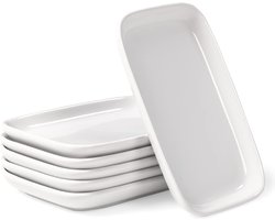 Mezzetborden van edel porselein, 15 x 10 x 1,7 cm, set van 6 stuks, witte voorgerechten, borden, snack, antipasti, dessert, mezze-borden, rechthoekig, sushiborden, serveerborden, vaatwasmachinebestendig