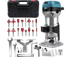 Elektrische Trimmer - 6 snelheden instelbaar - kantenfrees - Houtfrees - voor houtbewerking, frezen en sleuven maken - 15-delige freeskopset - Kantenfreesmachine - houtbewerkingsfrees- en sleuffreesmachine - Freesmachine