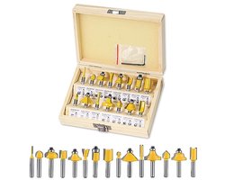 15-delige Freesset voor Houtbewerking met Houten Koffer en Sleutel
