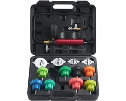 Universele Koelvloeistofdruktester Set, 14-delige Koelvloeistofdruktester met Handpomp en Kleuraangeduide Stalen Dopadapters, Voor Koelsystemen van Auto's, Motoren en Vrachtwagens