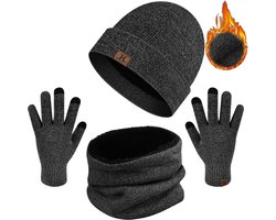 Mutsen heren Wintermutsen voor heren Sjaal voor heren Winterhandschoenen Touchscreenhandschoenen Wintertouchscreenhandschoenen voor heren 3 stuks, Grijs\Zwart,heekpek