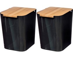 5Five prullenbak/vuilnisbak - 2x stuks - 5 liter - bamboe - zwart/lichtbruin - 24 x 19 cm - badkamer