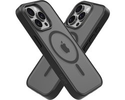 IYUPP Hoesje Geschikt voor iPhone 13 Pro Hoesje - Geschikt voor MagSafe - Shockproof Back Cover - Mat Zwart Transparant